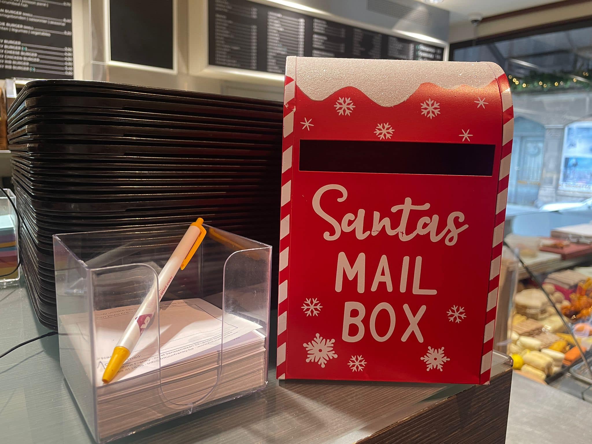 - Stop een ingevuld kaartje in onze kerstbrievenbus in de frituur.